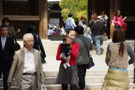さて明治神宮のご祈祷は毎日30分おきに行なわれているそうで、この日は日曜だったため大変混んでおり、同じ月齢くらいの赤ちゃんやそのご家族、健康を祈願する方、厄よけのかたなど、様々な方が1回のご祈祷で100人くらいいらっしゃっており大盛況(?)でした。