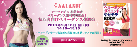 講師はアーランジュの杉谷知香。2012年12月の出産後、ベリーダンスにより3カ月で16kgの減量に成功。そんなマル秘エピソードも飛び出すかもしれない、貴重な機会です!