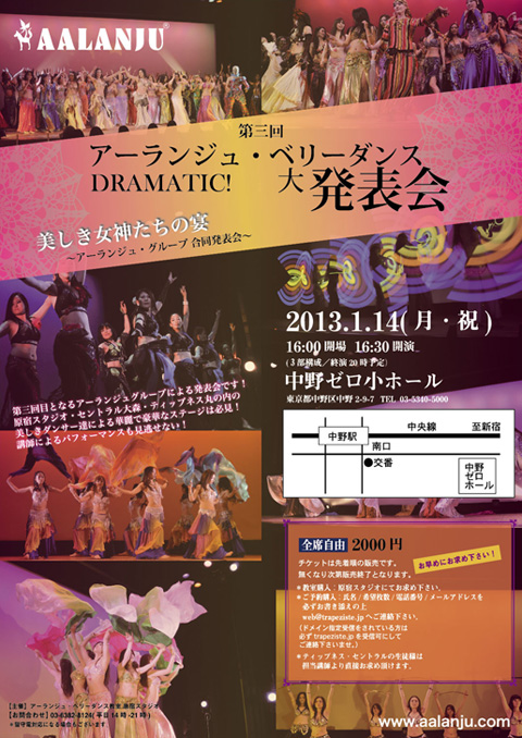 第3回アーランジュ・ベリーダンス発表会のチケット当日券発売します!2013年1月13日